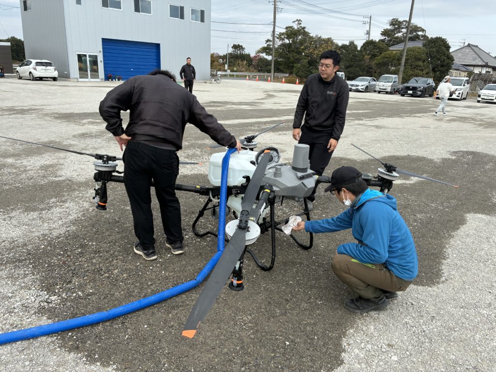 株式会社花縞様(千葉県山武市)にて、DJI最新農業用ドローン「AGRAS T70P」のデモフライトに参加いたしました。
